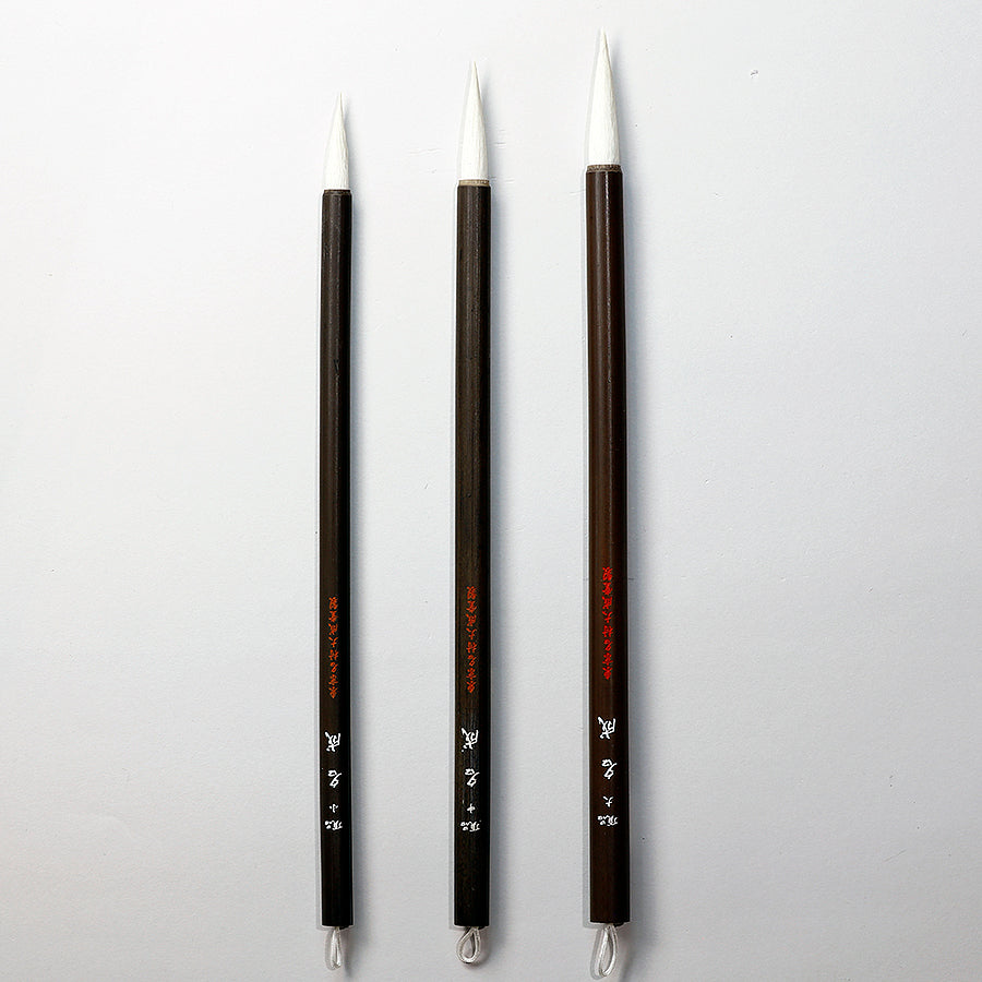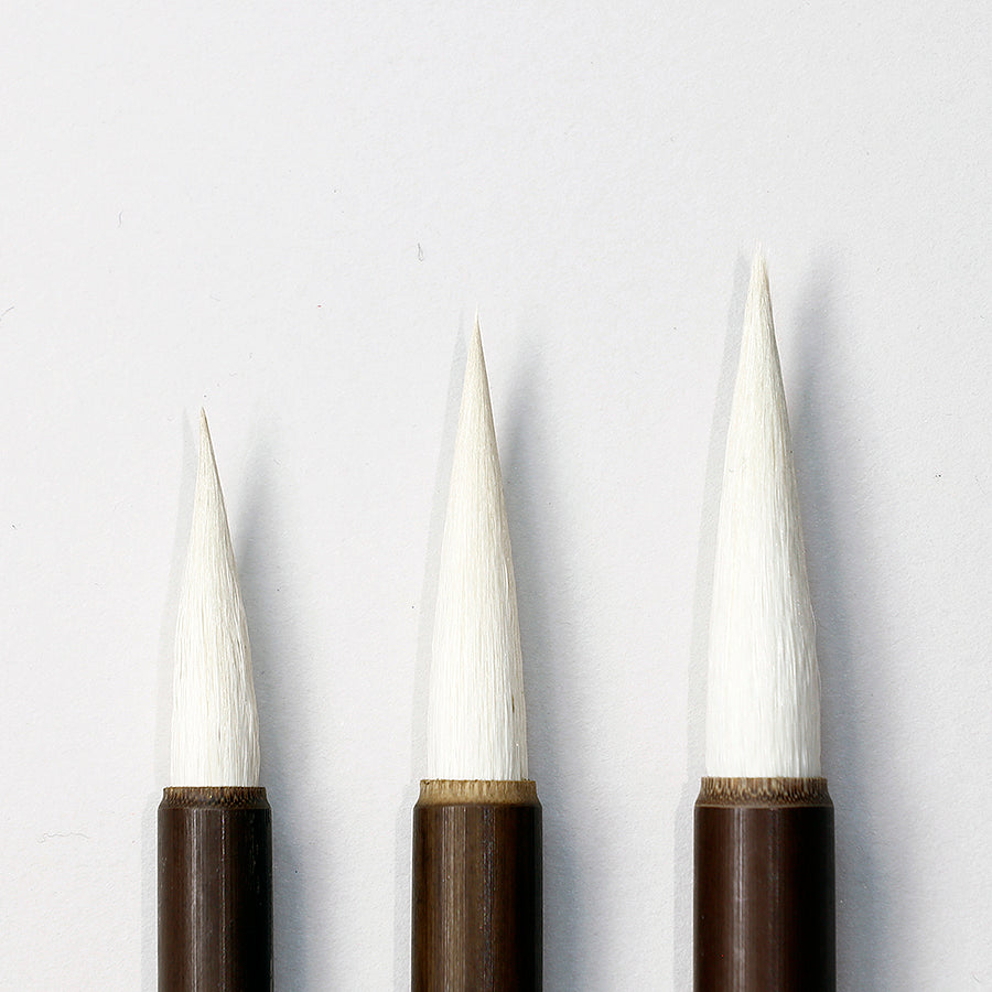 This is made using carefully selected mountain goat hair/chest hair of white raccoon as the main material. This has a sharp tip among other painting brushes, and it is excellent for painting fine lines. By using an abundance of goat hair for the body of the brush, an expression of flexible lines is possible. The opening and closing of the tip can be done smoothly, and it also absorbs the paint well. The tip is particularly maneuverable among Meisei brushes, it settles well, and it has an extremely soft feel when used.