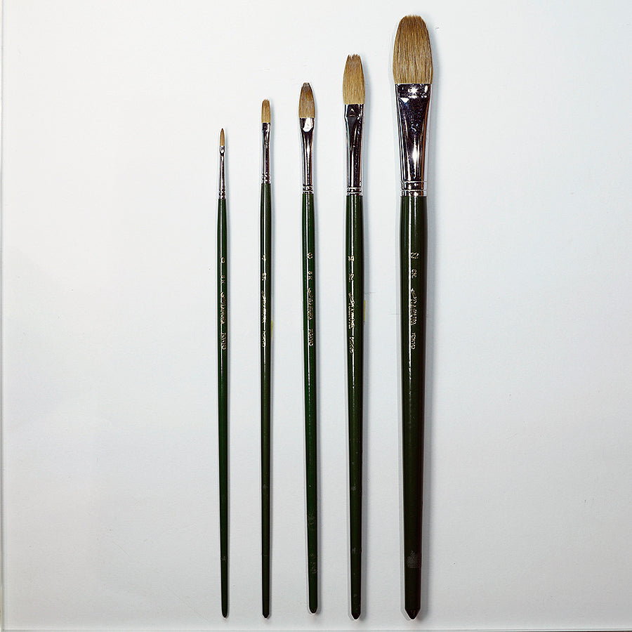 This is a paintbrush of the highest quality using kolinsky sable from Siberia. Using techniques unique to NAMURA, the absorption and elasticity is faultless, and the tip settles well. Since it is a flat brush with a circular tip, it is extremely easy to paint on a curved surface. As the size gets larger, it absorbs the paint better, and it is suited for coloring.