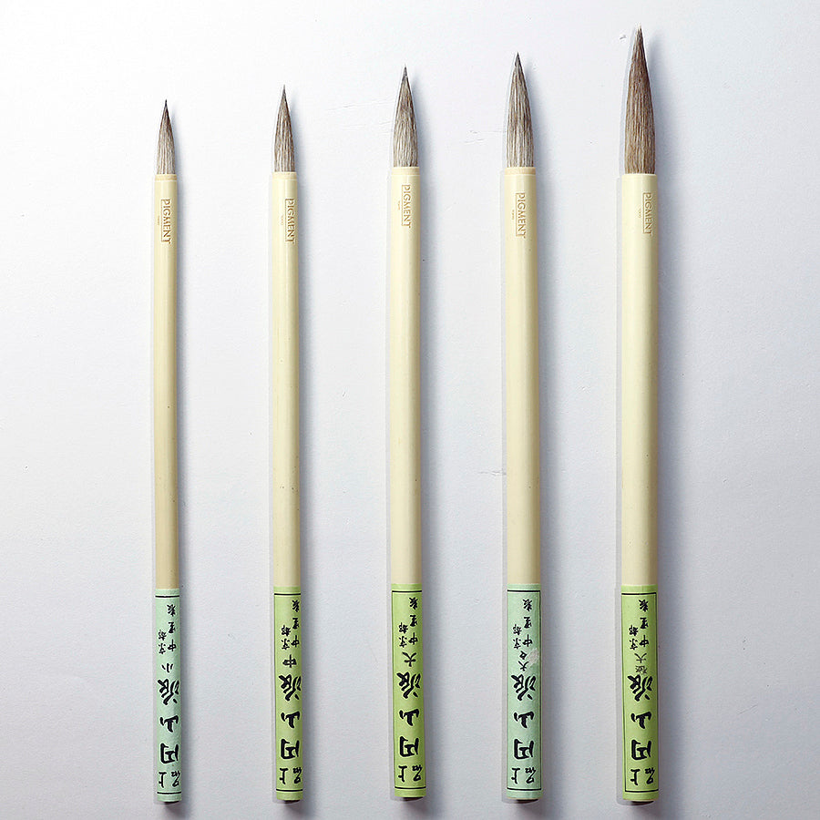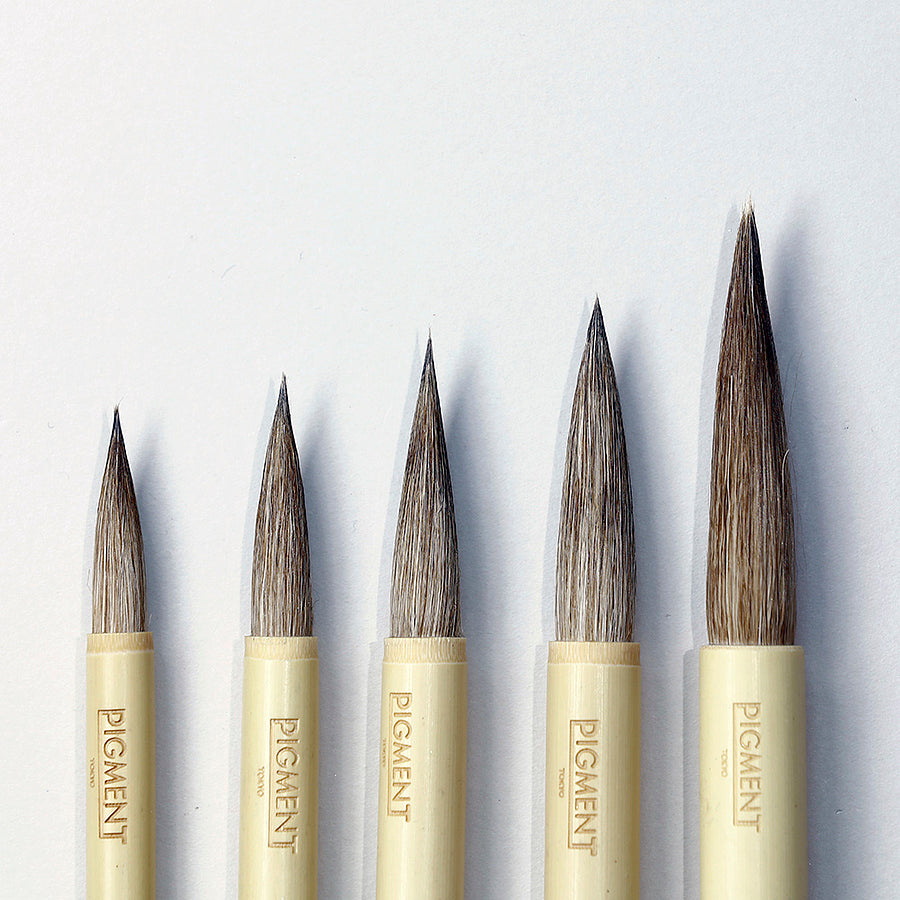 This has mixed hairs of goat hair, black raccoon hair, horse hair, and deer hair. This has moderate elasticity and absorbs water well. The touch is rough when compared to just the goat hair, therefore, it is easy to paint firm lines. Brush for the Unpitsu technique.br>