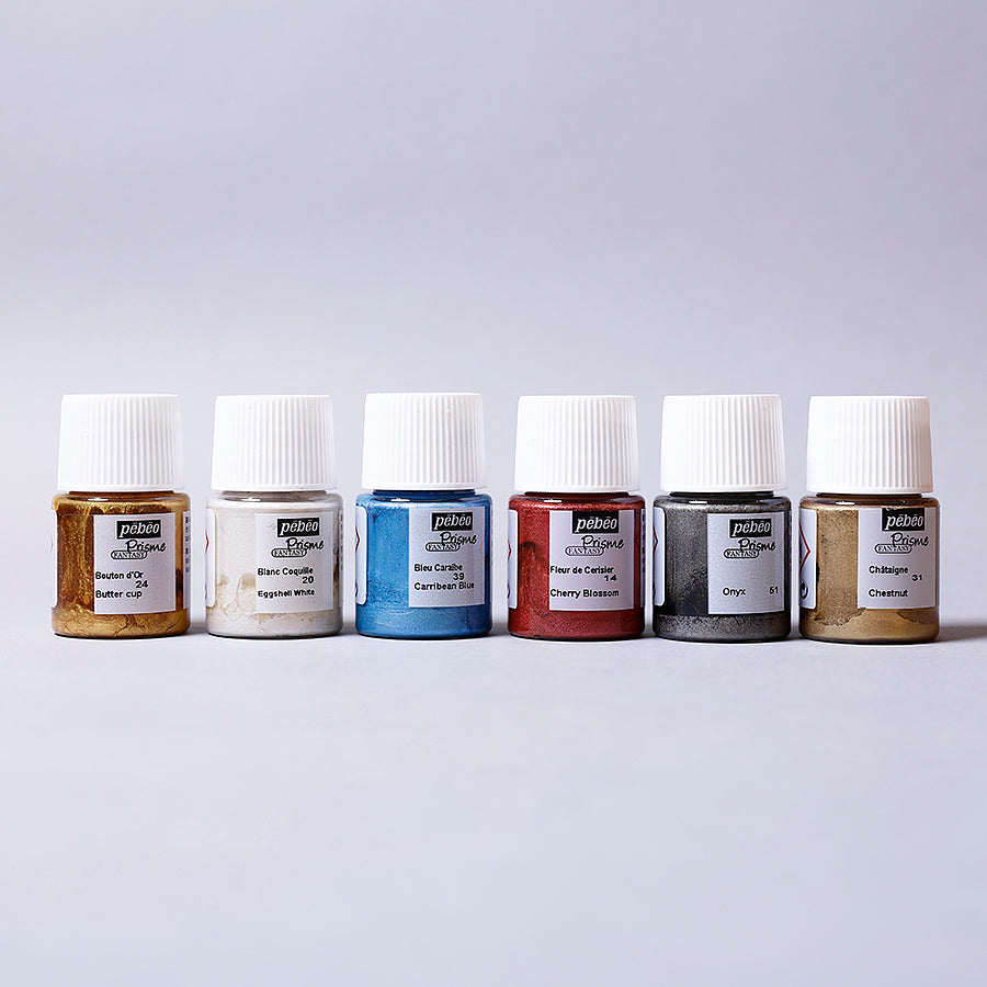 Solvent-based paints that is opaque and glossy. Apply with brushes and droppers. Suitable for flat and horizontal surface such as metal, wood, ceramics, canvas, glass, terracotta and mirror.