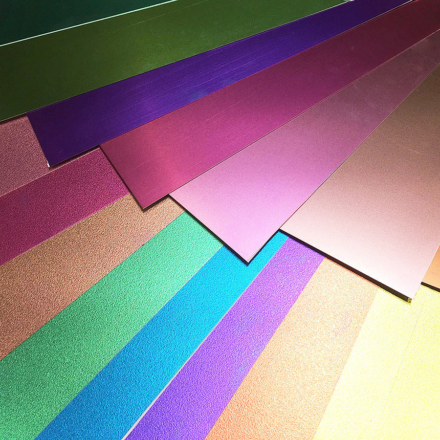 ◇Color Titanium is an original product of PIGMENT TOKYO, a designed titanium sheet developed by「TranTixxii®」. Texture, color, and durability of the titanium have the potential to expand the freedom of expression on artwork.
