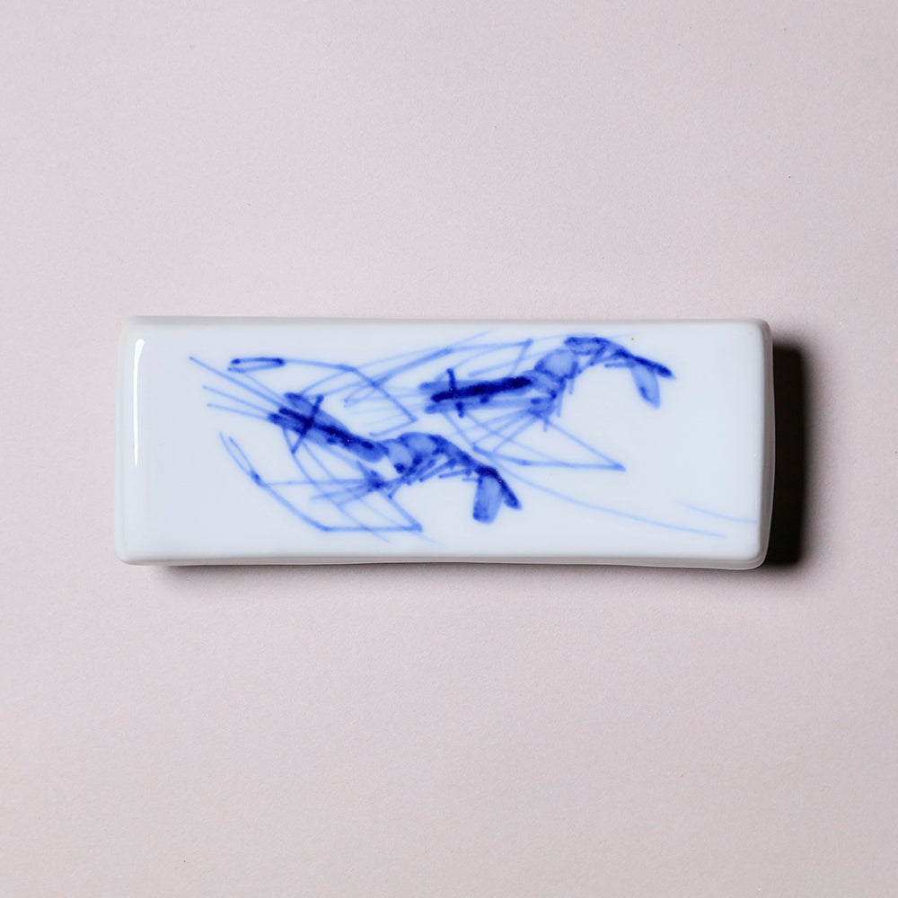 It is made of Chinese Jingdezhen porcelain and has shrimp drawn on it.