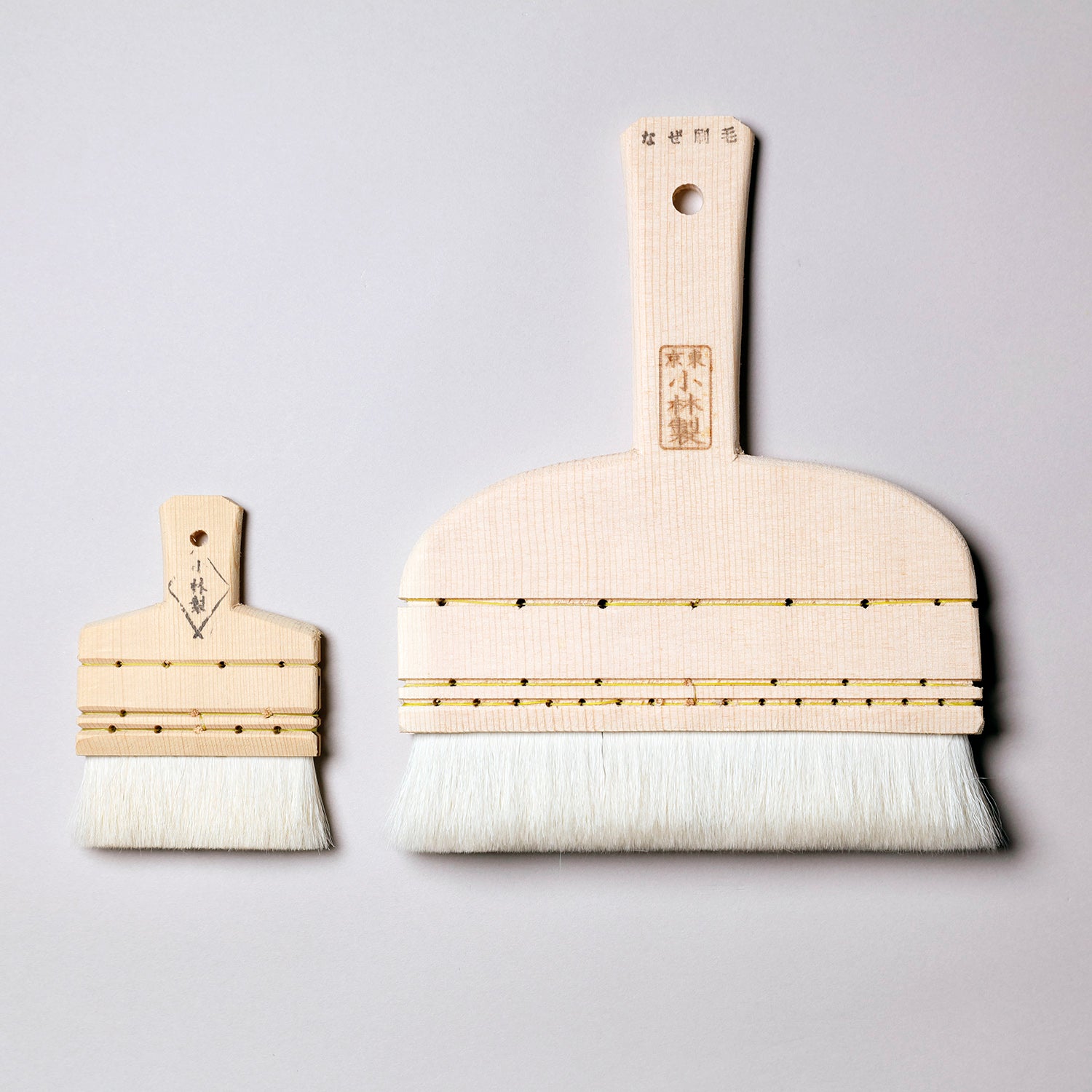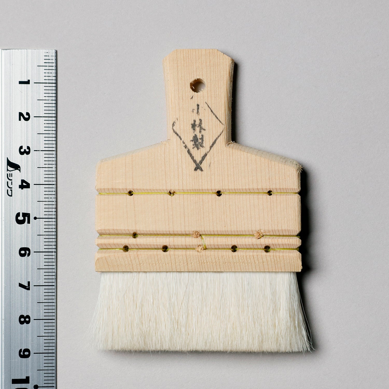 羊毛で出来ているため柔らかく、本紙の裏打ちを撫でるのに向いています。裏打ちなどの作業工程で、紙の表面を整える為に撫で付ける時に使用します。また、糊刷毛としてもご使用いただけます。 通常の刷毛に比べると大変小さく、小さい作品や小回りが必要な個所におススメです。 ※商品写真2枚目が、通常サイズの刷毛との比較になります。