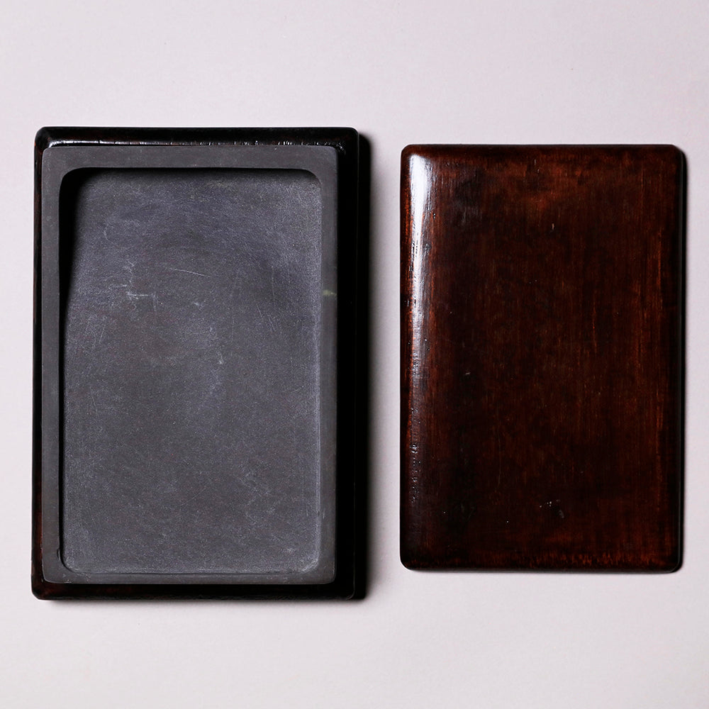 端渓硯は中国の硯における代名詞的な存在です。石のモース硬度は3.5と比較的柔らかく、その柔らかさ故に彫りを施しやすいため、装飾的な物が多くあります。また種類が豊富で採掘される抗窟で石質、名称が異なります。最上のものは川の水が流れ込む「老坑」と呼ばれる抗窟から採取したのもので、その肌合いはきめ細かく非常に滑らかです。それ故に墨を非常に滑らかに磨り下ろせ、水持ちが良く、磨った墨が乾きにくいのが特長です。それ故に油煙墨との相性がよいです。また、硯面に現れる石紋が幅広く豊かで、その紋一つ一つに名称が付けられているほどです。