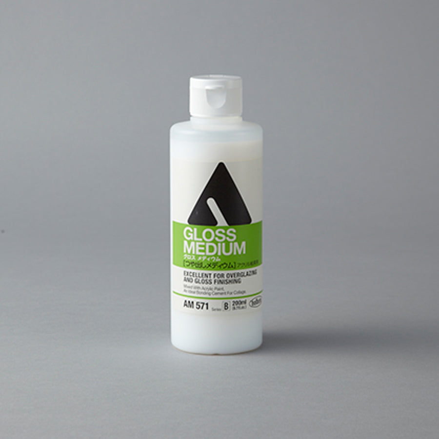 顔料ペーストやピグメントに混ぜて使うと、つやと透明感、色の深みが増します。絵具の流動性も高まるのでグレーズ技法や、接着力を利用したコラージュにも最適です。