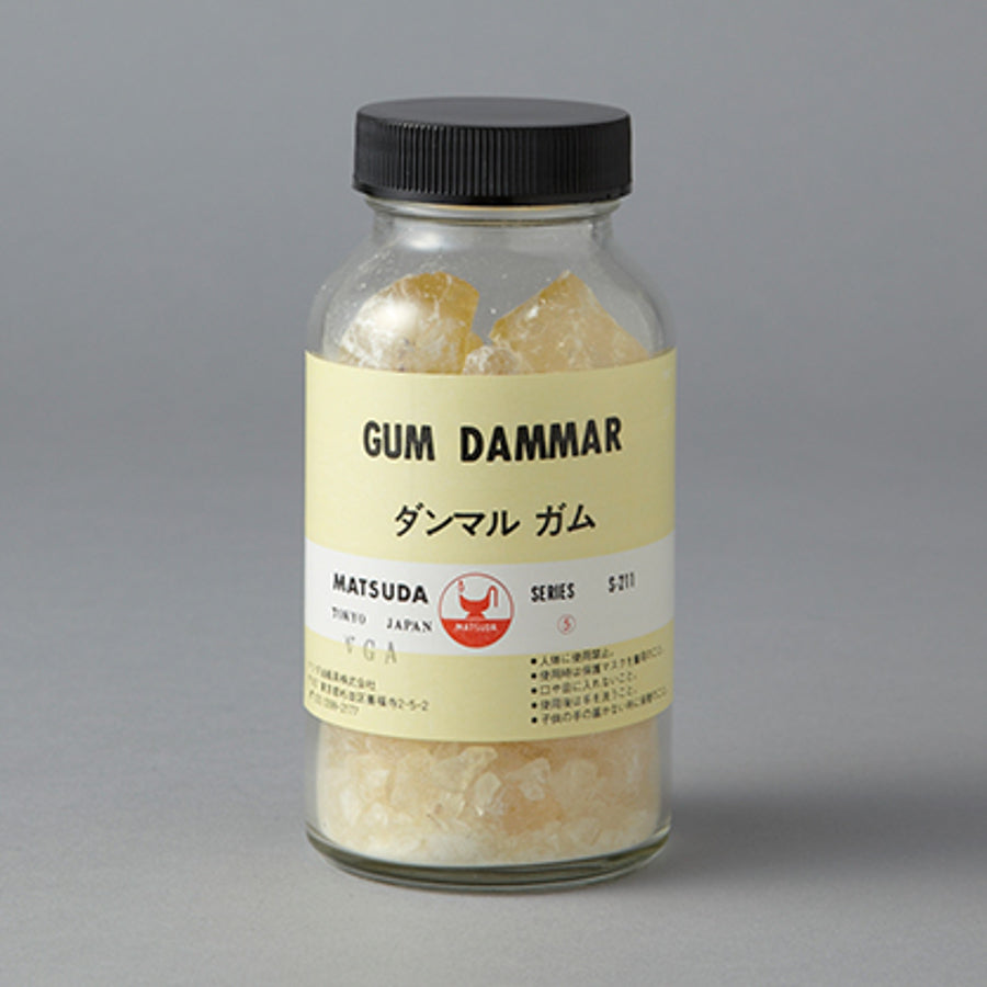 テレピンやペトロールに溶かしてダンマルワニスとし、描画用メディウム、保護ワニスとして用います。 描画用の場合、絵具の光沢や透明性を増し、ハリのある画面効果が得られる。成分…ダンマル酸と2種のレセン