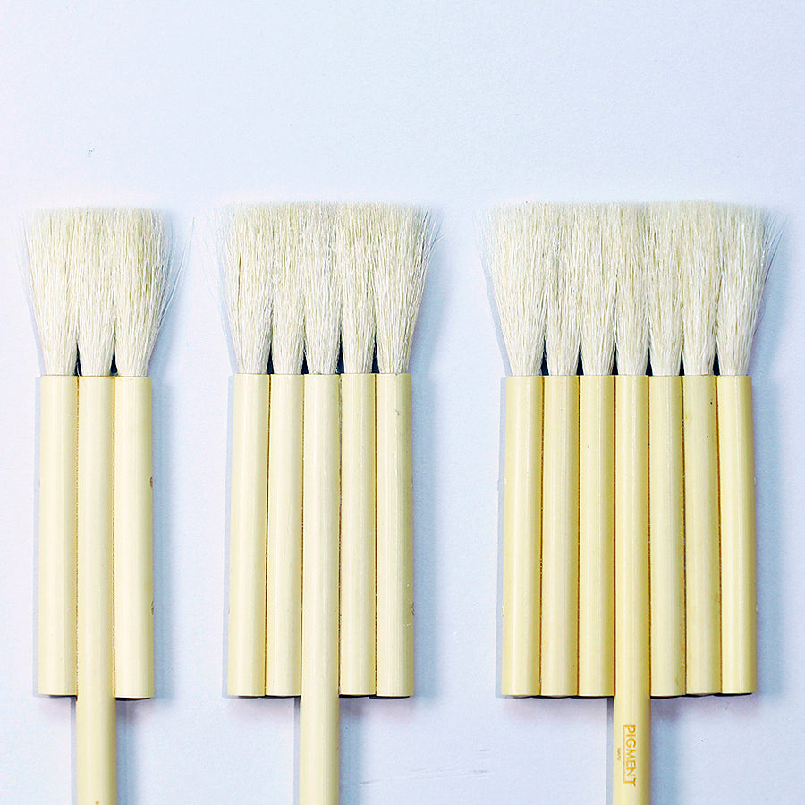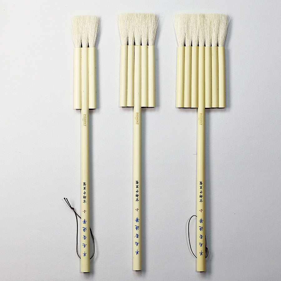 使うほどにコシがでできます。鹿毛入連筆よりもたっぷりと含みがよく、柔らかいです。丸筆を組み合わせて作られているので、刷毛よりも含みがよく、均等に色を塗ることができます。