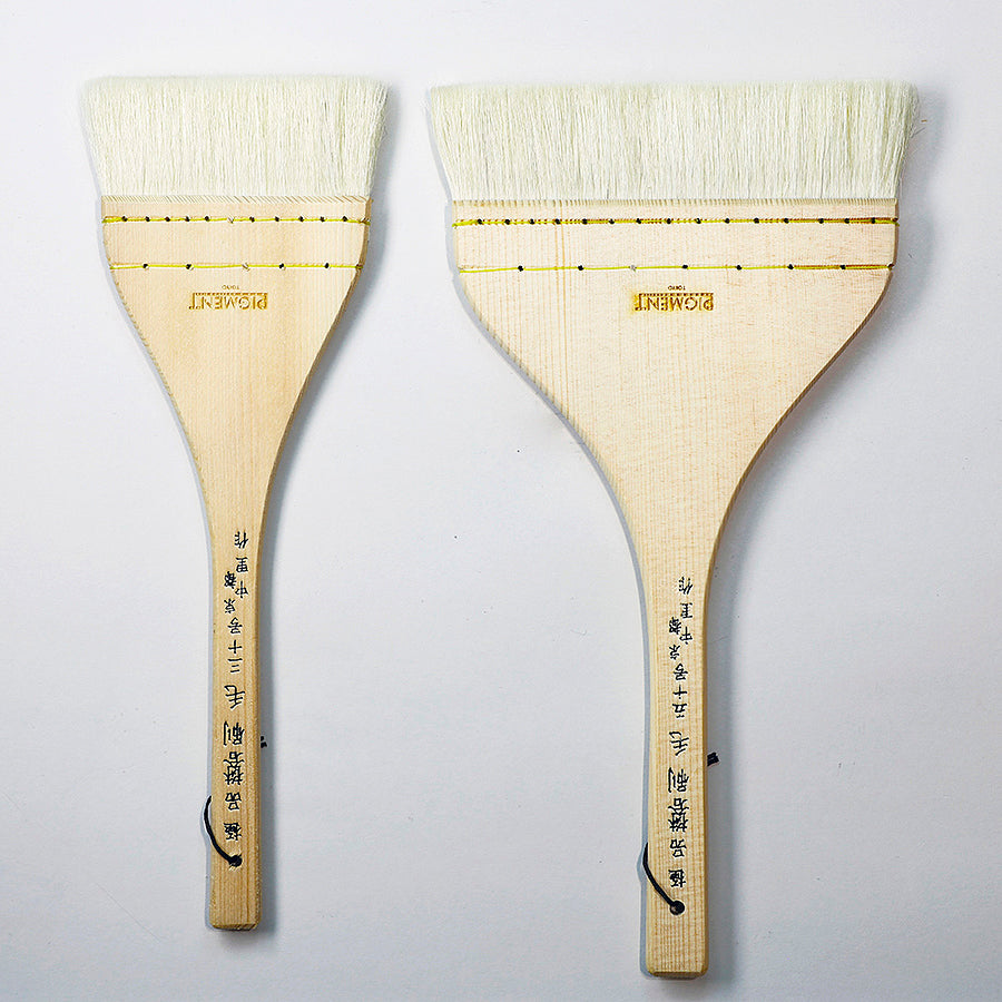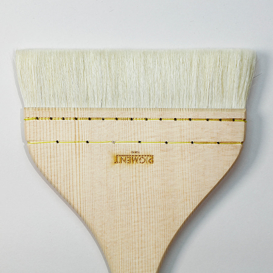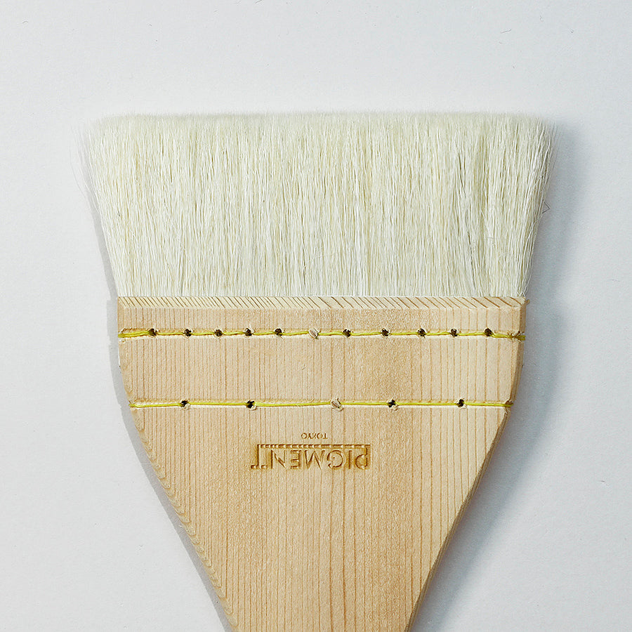 羊毛髯に白ナイロン毛をわずかに混毛し、通常のドーサ刷毛よりも毛は薄く仕上げてあります。ドーサ刷毛よりも少しコシがあります。