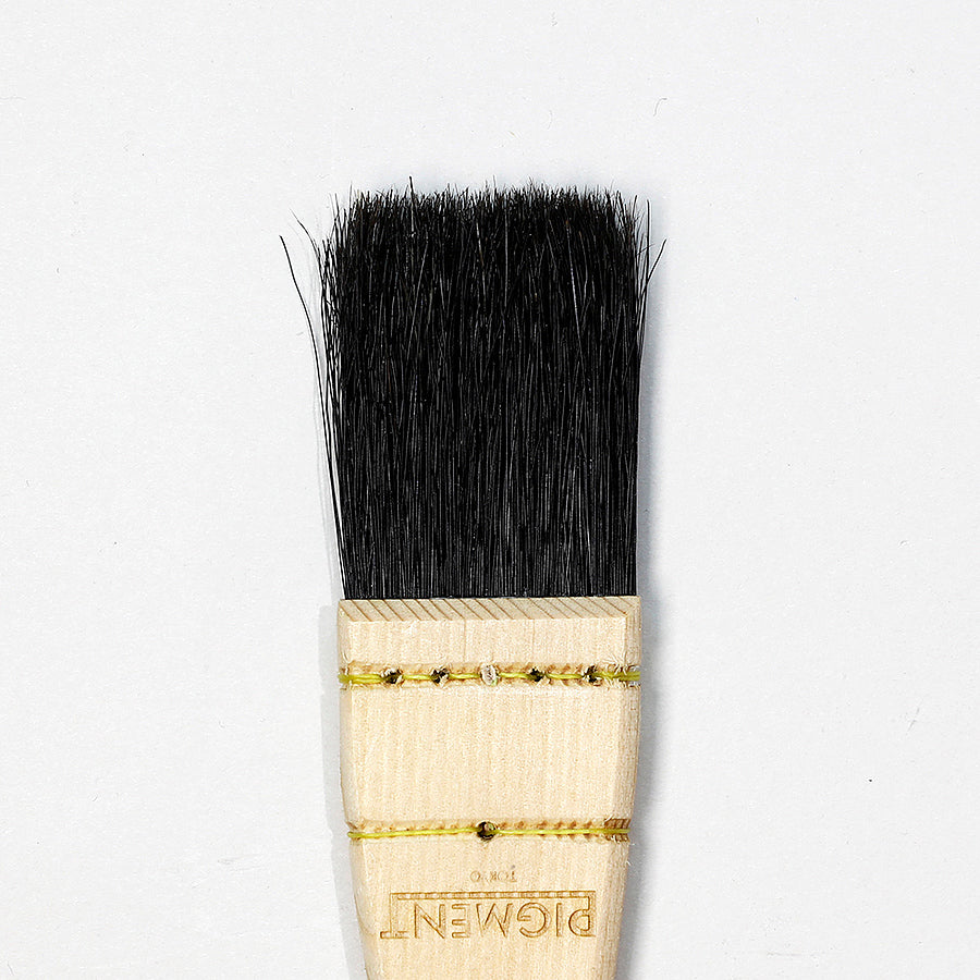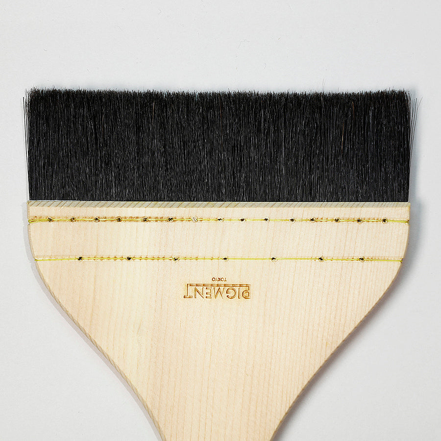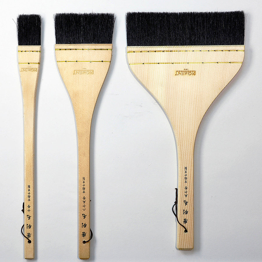 横山大観や菱田春草など、「朦朧体」と称された画家達が背景等を綺麗に暈す為に用いた刷毛です。また、かすれたタッチを描くのにも適しています。原料に黒豚毛を使用してますので、山馬刷毛に比べてリーズナブルな価格となっています。