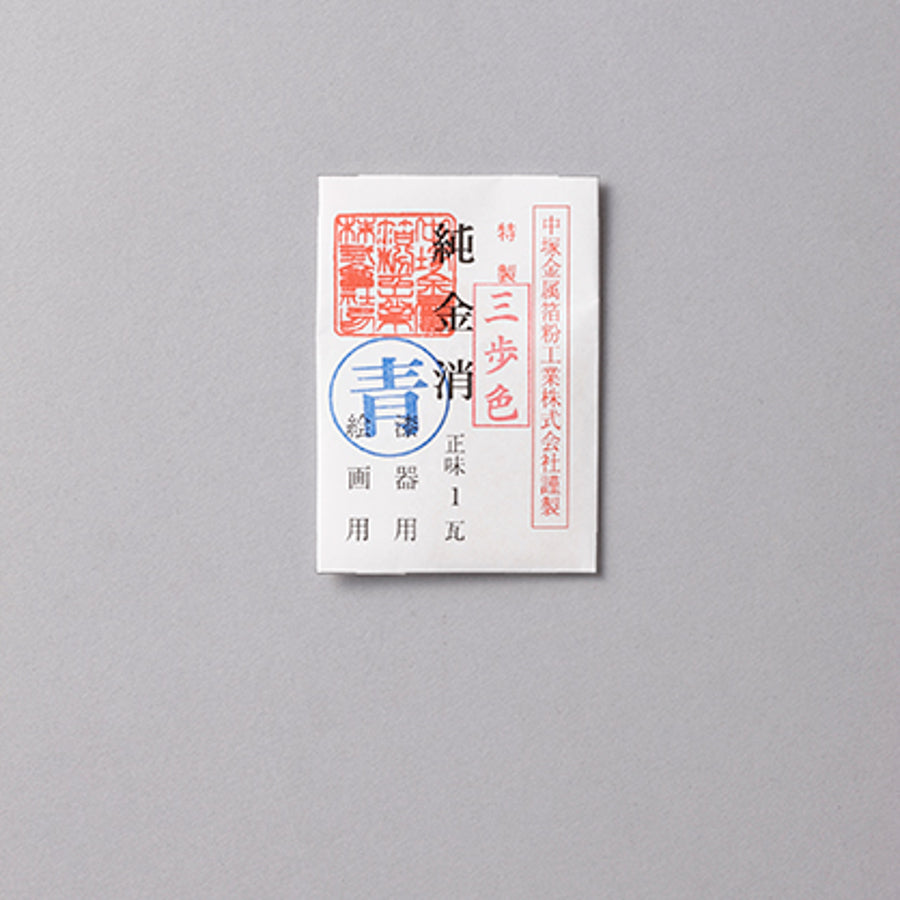 純金箔(切廻し)からつくる粒子の細かい青みを帯びた純金顔料です。絵画や高級仏具、金継などにも使用されます。 入数0.4g