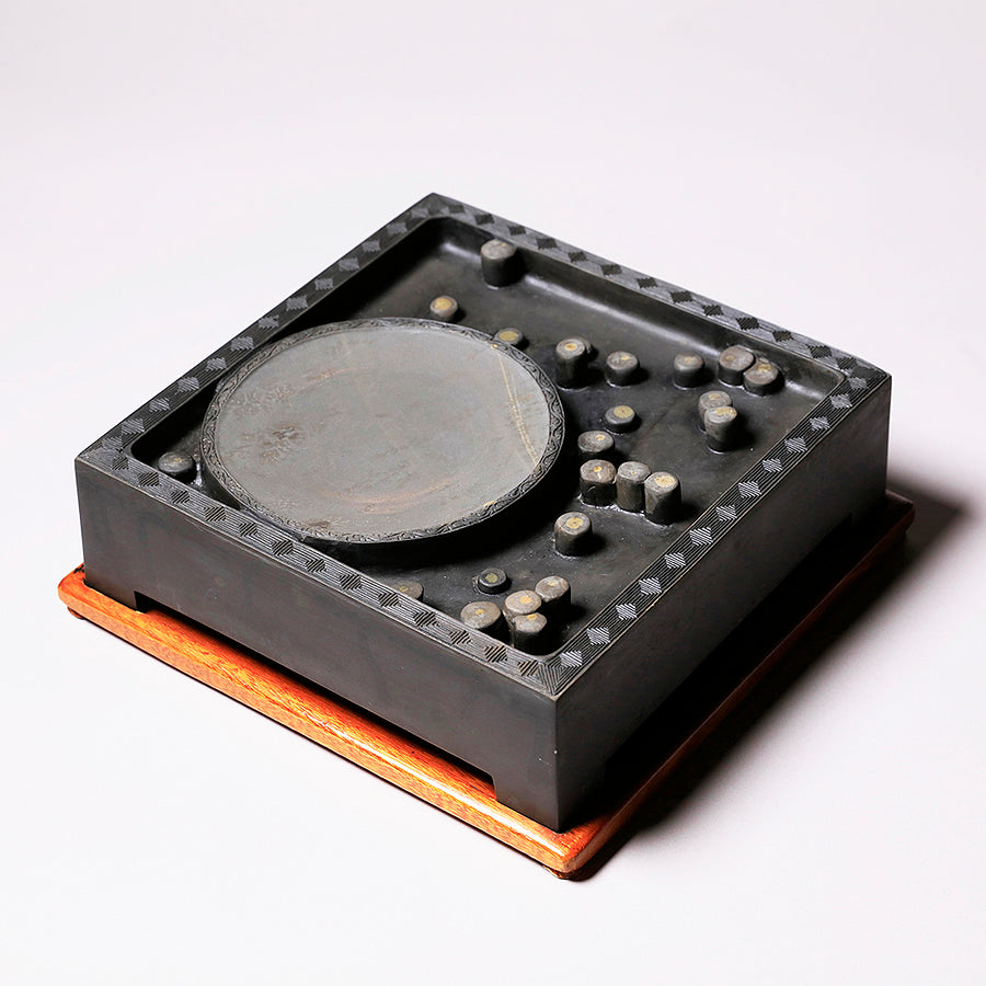 中国の硯における代名詞的な存在です。石のモース硬度は3.5と比較的柔らかく、その柔らかさ故に彫りを施しやすいため、装飾的な物が多くあります。また種類が豊富で採掘される抗窟で石質、名称が異なります。最上のものは川の水が流れ込む「老坑」と呼ばれる抗窟から採取したのもので、その肌合いはきめ細かく非常に滑らかです。それ故に墨を非常に滑らかに磨り下ろせ、水持ちが良く、磨った墨が乾きにくいのが特長です。それ故に油煙墨との相性がよいです。また、硯面に現れる石紋が幅広く豊かで、その紋一つ一つに名称が付けられているほどです。