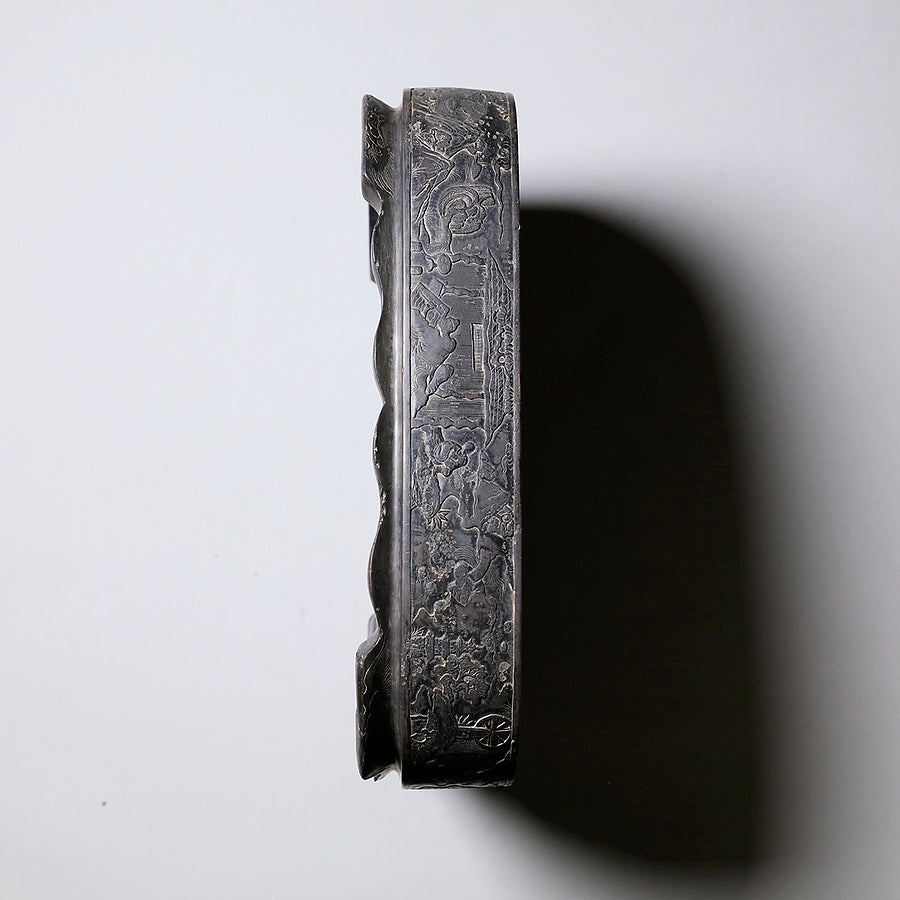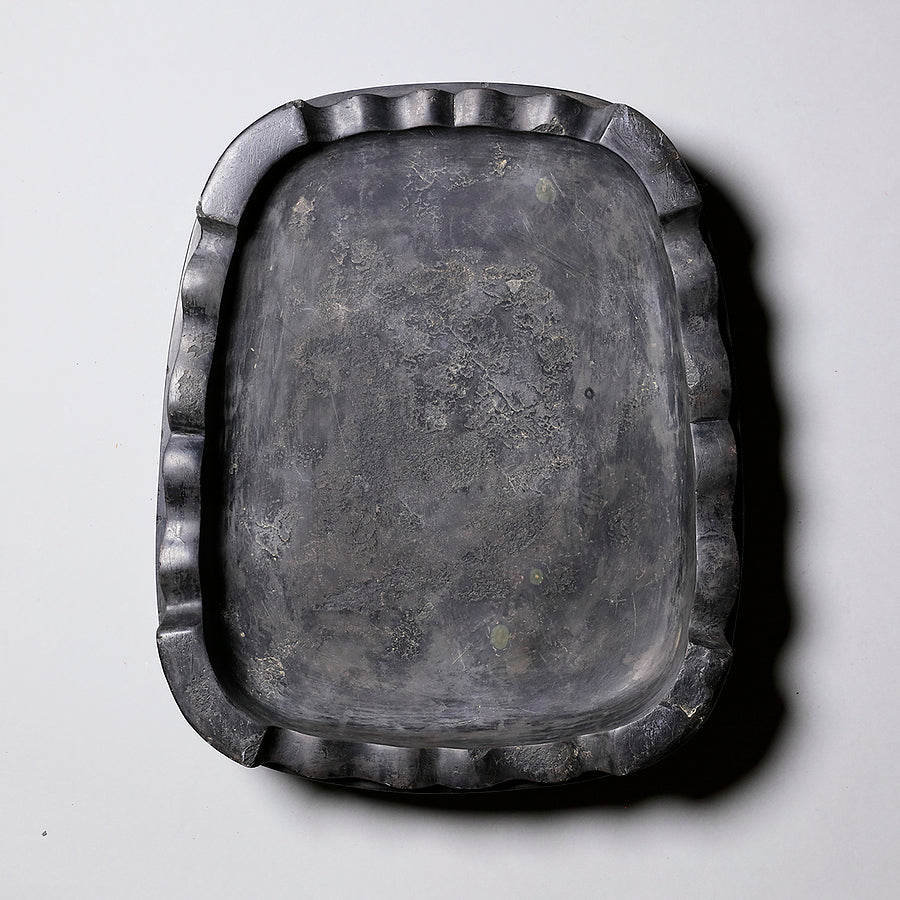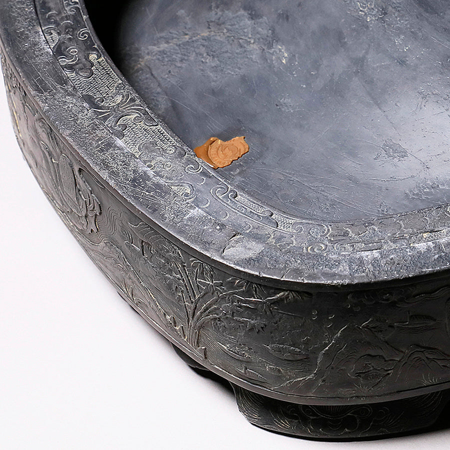 中国の硯における代名詞的な存在です。石のモース硬度は3.5と比較的柔らかく、その柔らかさ故に彫りを施しやすいため、装飾的な物が多くあります。また種類が豊富で採掘される抗窟で石質、名称が異なります。最上のものは川の水が流れ込む「老坑」と呼ばれる抗窟から採取したのもので、その肌合いはきめ細かく非常に滑らかです。それ故に墨を非常に滑らかに磨り下ろせ、水持ちが良く、磨った墨が乾きにくいのが特長です。それ故に油煙墨との相性がよいです。また、硯面に現れる石紋が幅広く豊かで、その紋一つ一つに名称が付けられているほどです。