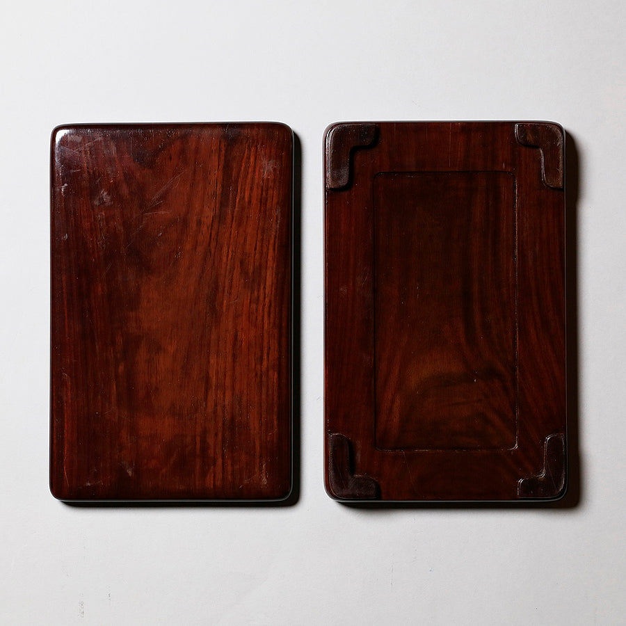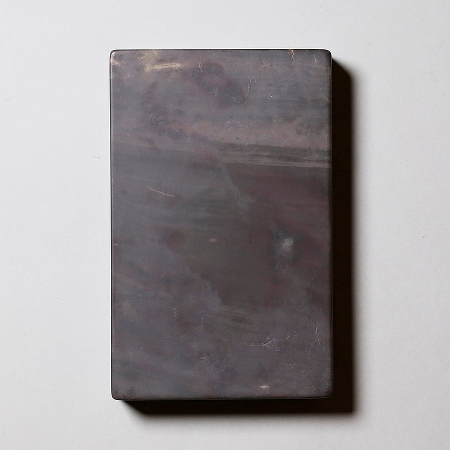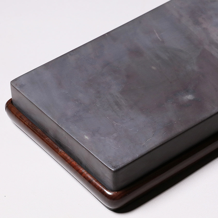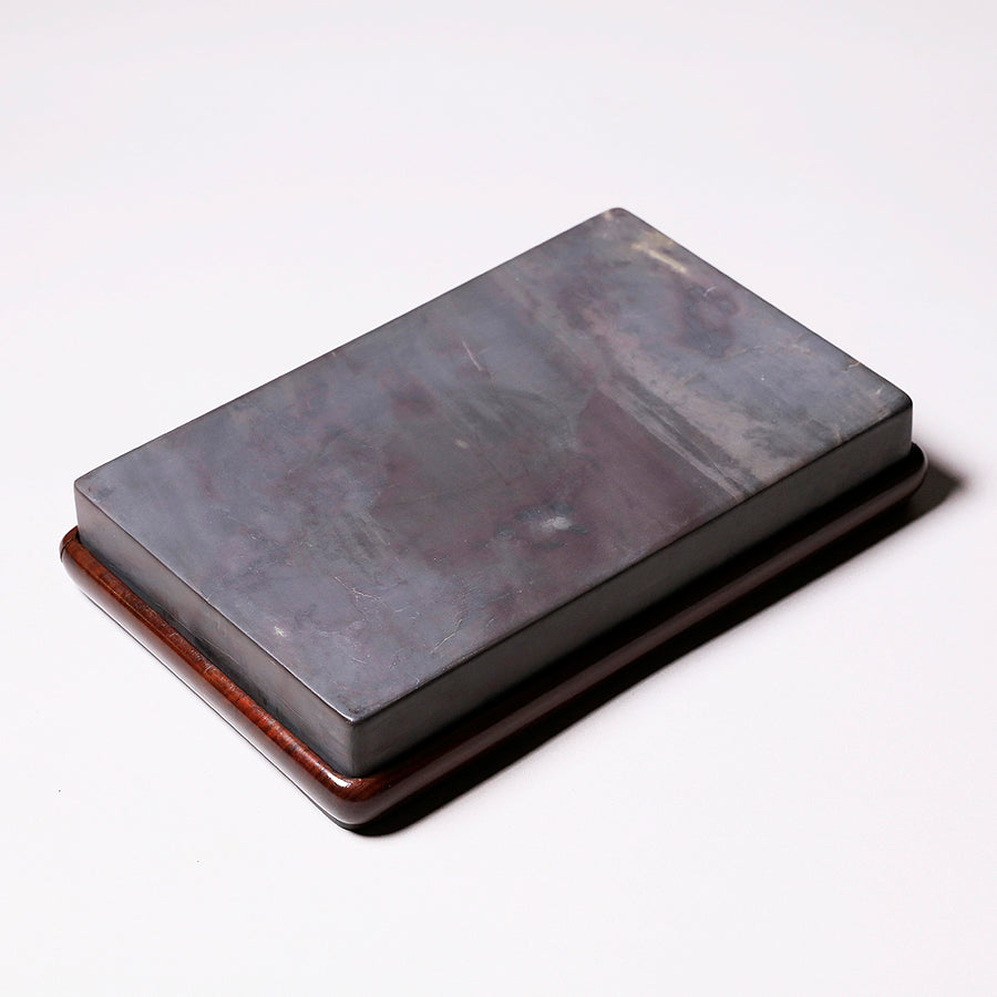 端渓硯は中国の硯における代名詞的な存在です。石のモース硬度は3.5と比較的柔らかく、その柔らかさ故に彫りを施しやすいため、装飾的な物が多くあります。また種類が豊富で採掘される抗窟で石質、名称が異なります。最上のものは川の水が流れ込む「老坑」と呼ばれる抗窟から採取したのもので、その肌合いはきめ細かく非常に滑らかです。それ故に墨を非常に滑らかに磨り下ろせ、水持ちが良く、磨った墨が乾きにくいのが特長です。それ故に油煙墨との相性がよいです。また、硯面に現れる石紋が幅広く豊かで、その紋一つ一つに名称が付けられているほどです。