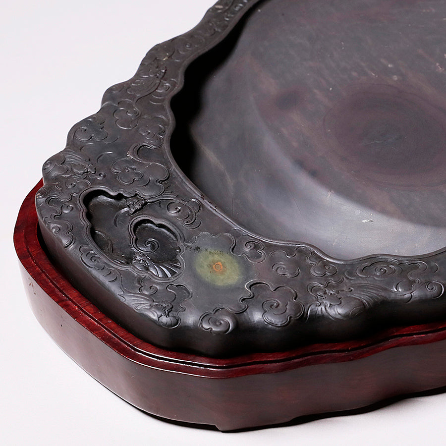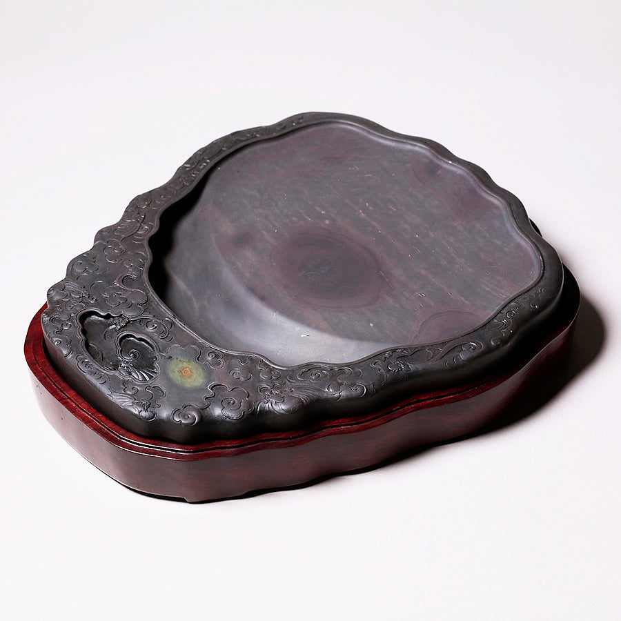 中国の硯における代名詞的な存在です。石のモース硬度は3.5と比較的柔らかく、その柔らかさ故に彫りを施しやすいため、装飾的な物が多くあります。また種類が豊富で採掘される抗窟で石質、名称が異なります。最上のものは川の水が流れ込む「老坑」と呼ばれる抗窟から採取したのもので、その肌合いはきめ細かく非常に滑らかです。それ故に墨を非常に滑らかに磨り下ろせ、水持ちが良く、磨った墨が乾きにくいのが特長です。それ故に油煙墨との相性がよいです。また、硯面に現れる石紋が幅広く豊かで、その紋一つ一つに名称が付けられているほどです。