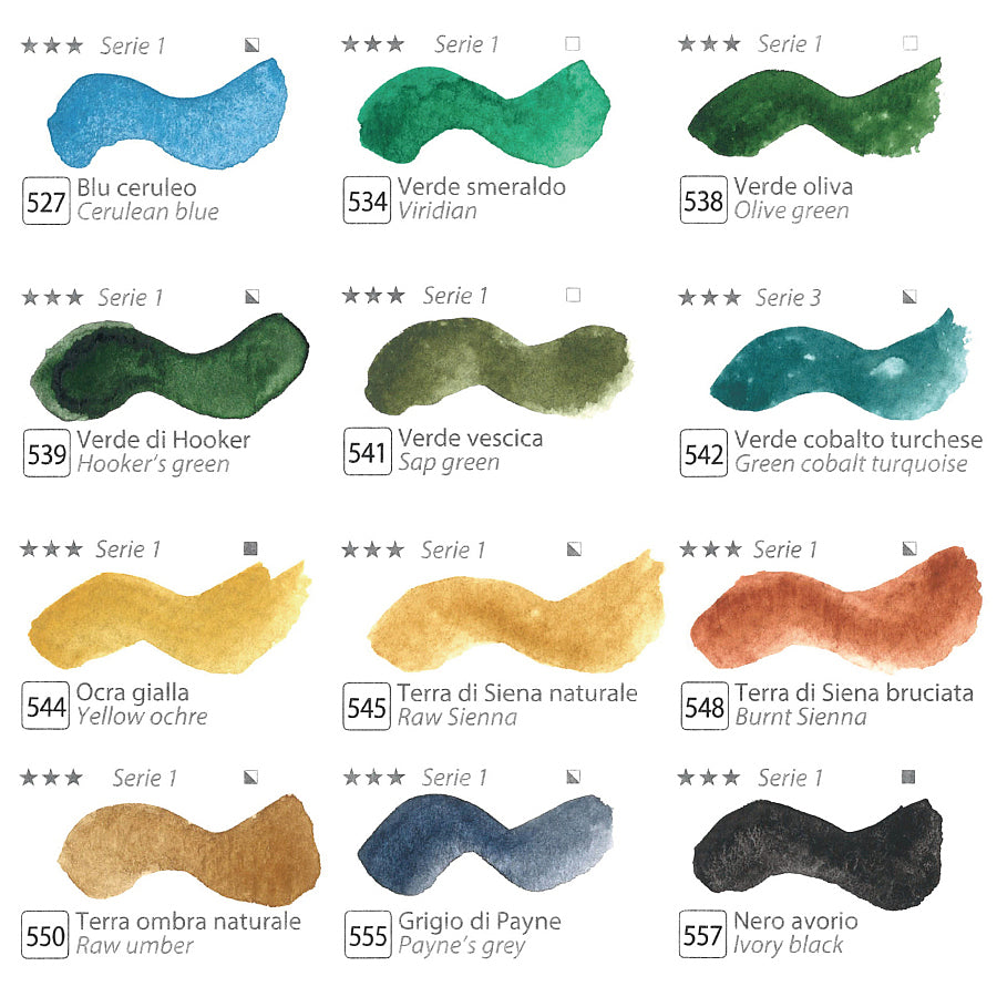 539 フッカーズグリーン / 541 サップグリーン / 542 コバルトターコイズ