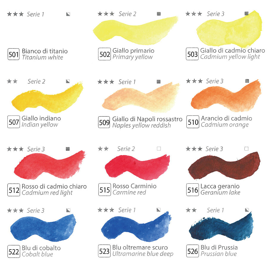 501 チタニウムホワイト / 502 プライマリーイエロー / 503 カドミウムイエローライト