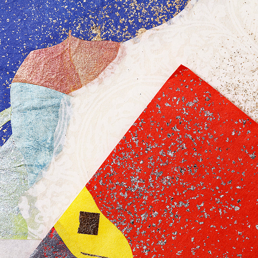 経巻や色紙など書の料紙装飾に多用されるほか、絵画では顔料の代わりとして地面や霞の部分などに用いられています。