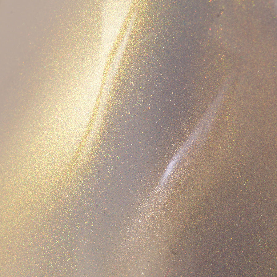 ホウ珪酸ガラスを基材にしており、従来のパール顔料では得ることのできない光輝感と高い透明性、澄んだ色彩を表現しています。