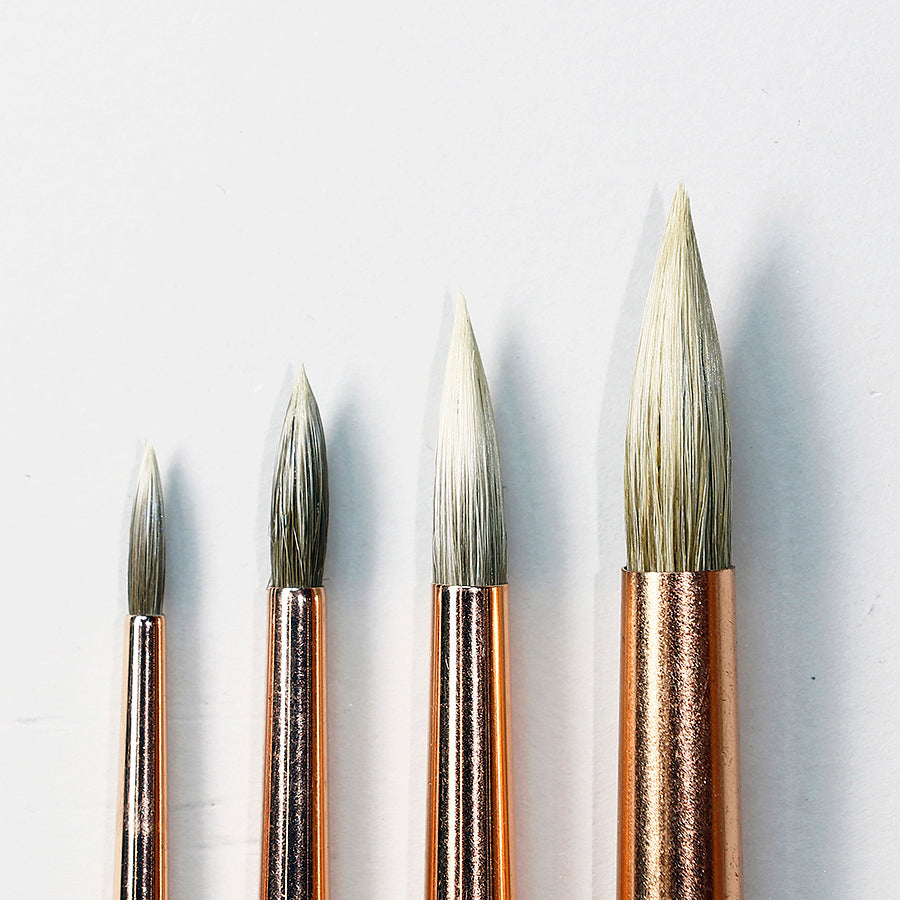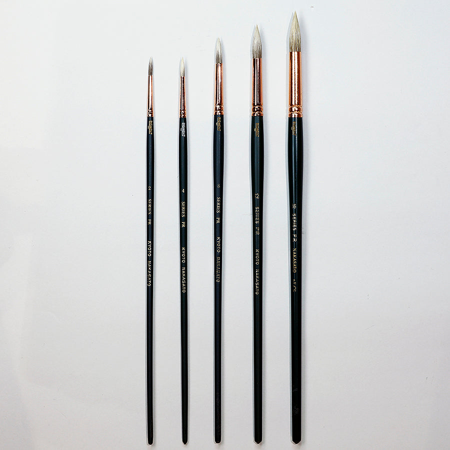 パーミ毛を使用した軟毛タイプの丸型油彩筆です。イタチ毛より少し粗いですが、力強く描く事ができます。