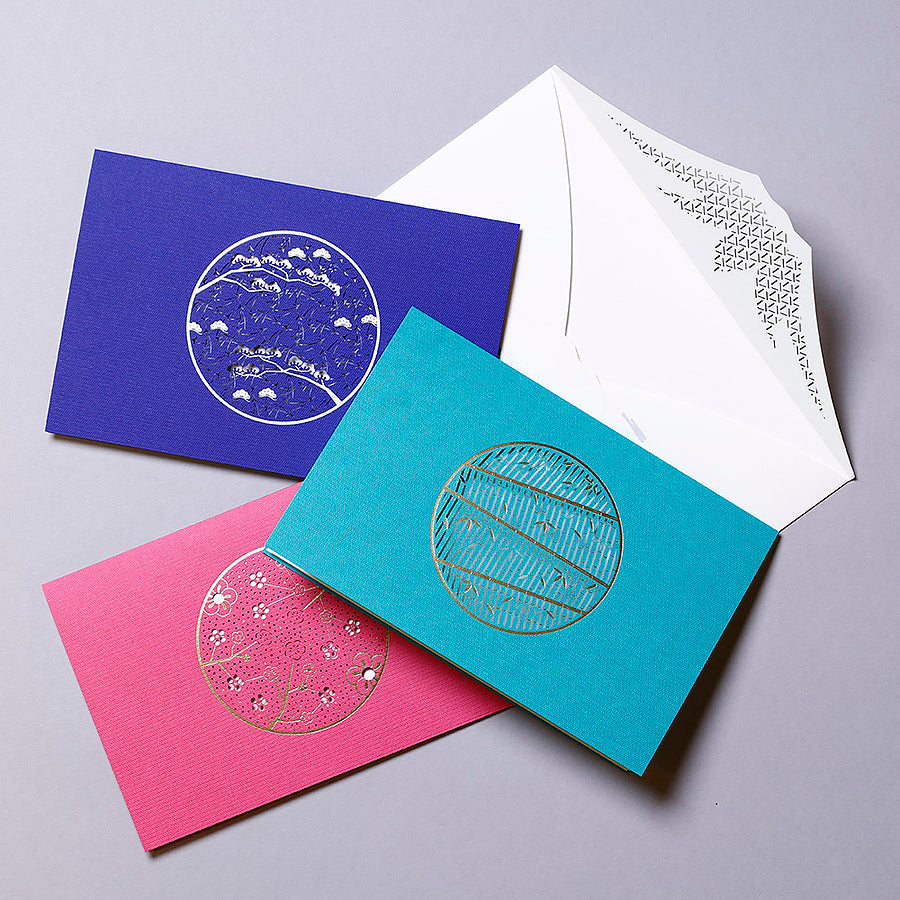 松の可愛い柄がレーザーカットされており、各々に富士山の柄がカットした封筒が付いています。