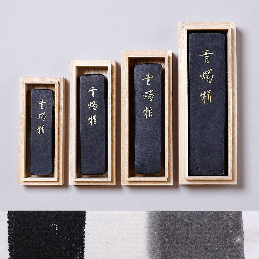 古くなるほど個性が顕著に現れ、強い立体感と透明度が増し超淡墨まで使えます。顔料等一切使用しておらず松煙そのままの製品です。