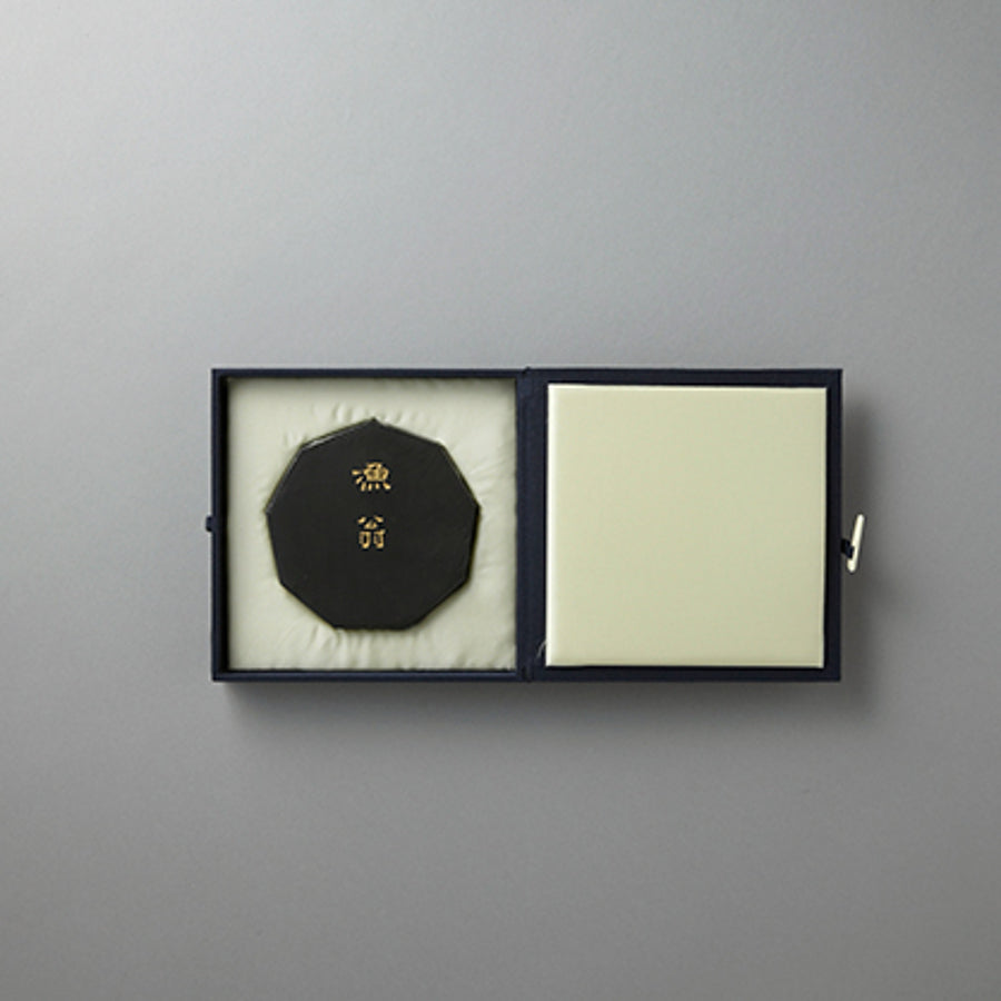 体質的には炭素粒子の分散を抑えられるだけ抑え、地味な感じの中に暗さ、強さを調和させ、その上赤みと白光で温かみと品位を具備させ、はんなりとした青墨にしてあります。色彩的には赤みを感じる青みの中に不透明さが墨色の厚み、強さになり、温かみのある複雑な青墨。年を経るに従い一層墨も落ち着き芯と滲みの分離、墨色の冴えが出て参ります。墨が乾くに従い個性、特長がより一層顕著になると思います。
