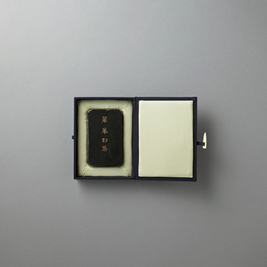 体質的には炭素粒子の分散を極度に抑え、墨色の強さと厚みにし、地味ながら炭素自身の色で美しさの調和をとり、全体的に明るく造ってあります。色彩的には赤み(温かみ)のある不透明な強さ、厚みを感じる渋い赤紫系の上品な黒。濃、中、淡墨いづれの濃度でも御使用頂けます。特に芯と滲みに重点をおき厚みのある墨色の表現に努めております。この輩輩封候は漢字、仮名(加工紙)、墨画などあらゆる方面に御使用頂けます。製造年度:昭和59年