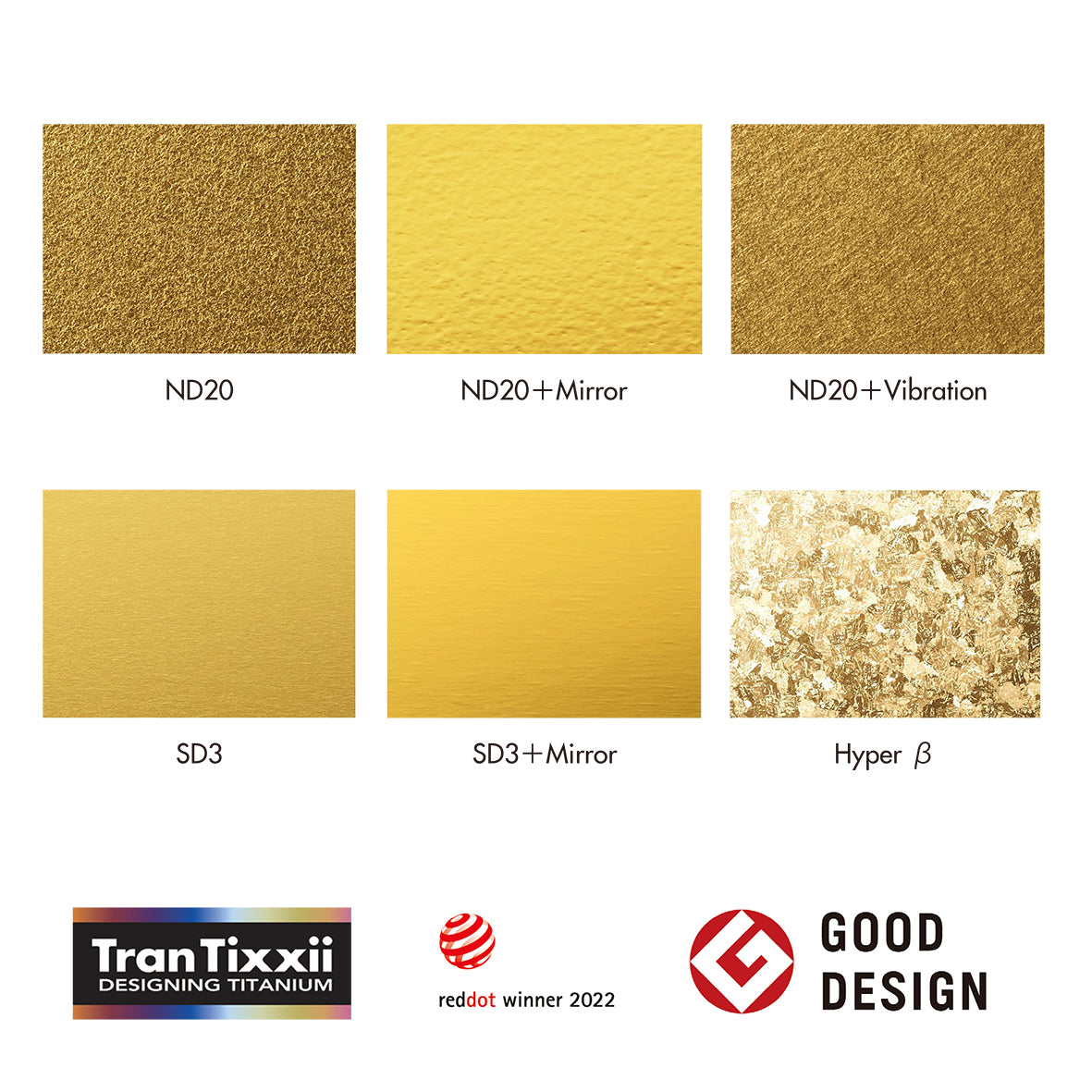 チタンは元々渋みのある落ち着いた銀色をしていますが、研磨やブラスト処理をすることで多様な表情を作り出すことができます。加えて、陽極酸化によってチタン表面に存在する酸化被膜の厚みを1/100ミクロン単位で調整することで、色調豊かな干渉色が現れます。見る角度や天候、時間、光の移ろいによって変化していく様は、実に魅力的です。