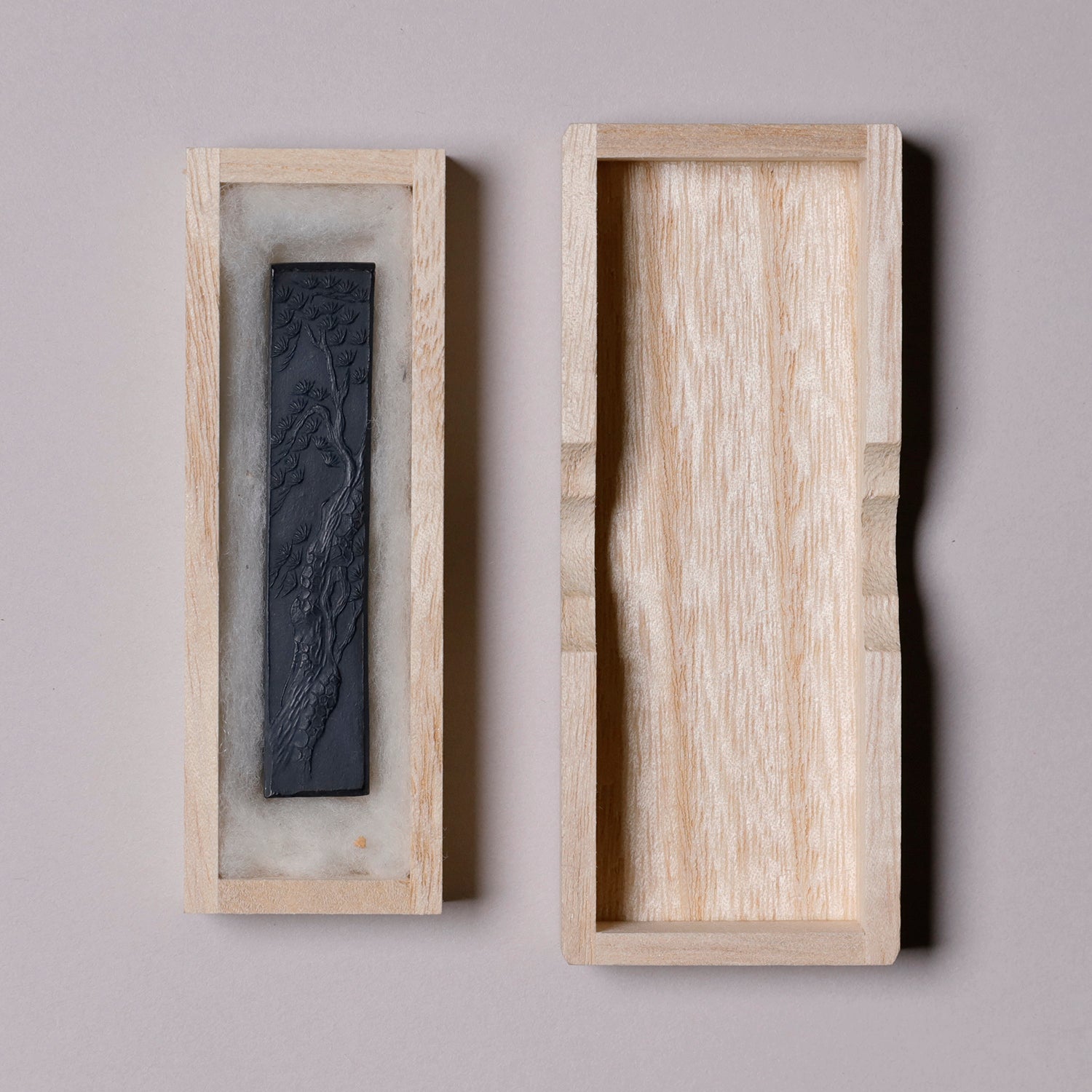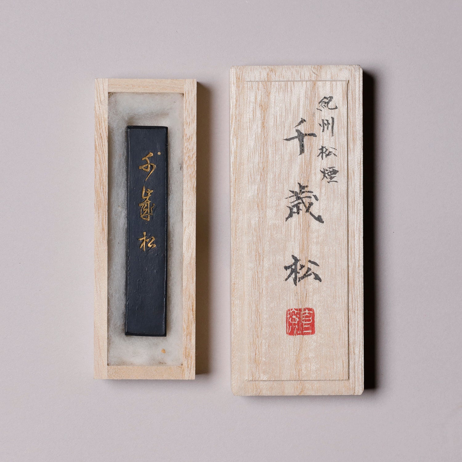 この「せんざいしょう」という墨名は、古梅園六代当主元泰がたいへん質の高い松煙墨を天皇に献上したことにより下賜された名称です。