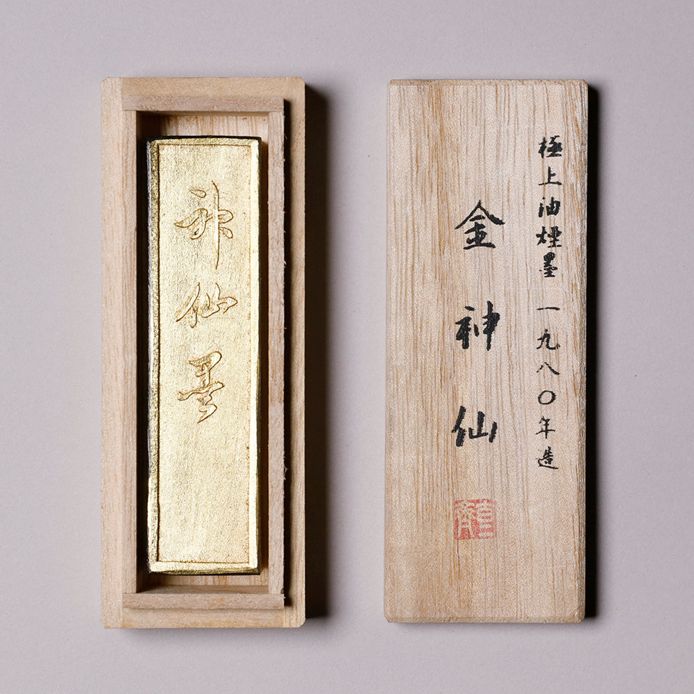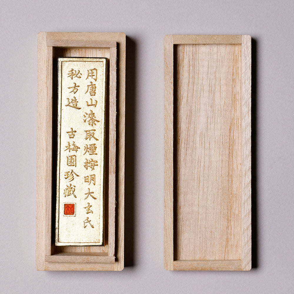 墨全体に薄く貼金されており、見た目も華やかで文房清玩としても人気のある墨です。
