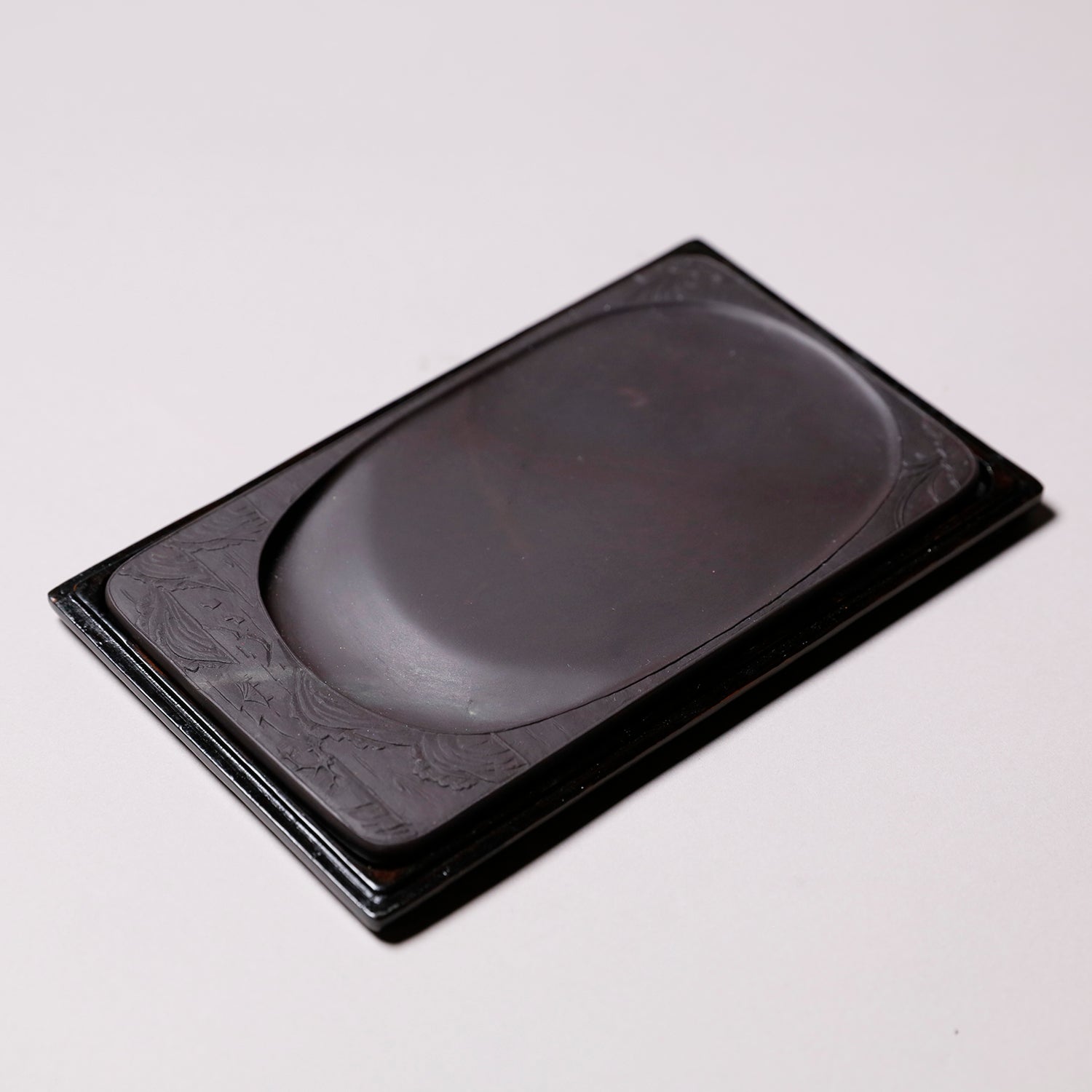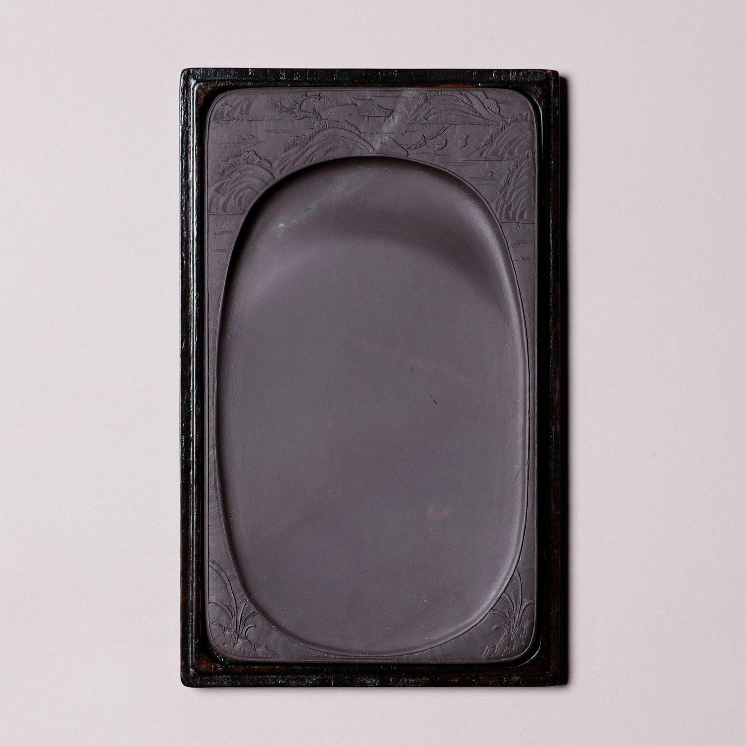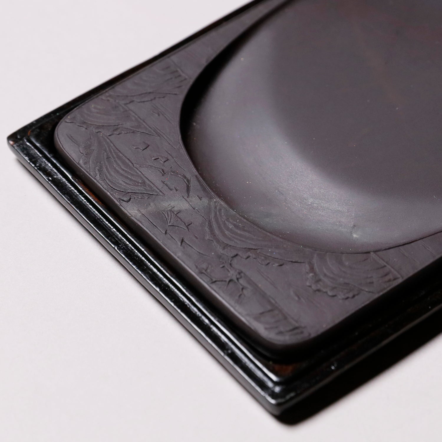 端渓硯は中国の硯における代名詞的な存在です。石のモース硬度は3.5と比較的柔らかく、その柔らかさ故に彫りを施しやすいため、装飾的な物が多くあります。また種類が豊富で採掘される抗窟で石質、名称が異なります。最上のものは川の水が流れ込む「老坑」と呼ばれる抗窟から採取したのもので、その肌合いはきめ細かく非常に滑らかです。それ故に墨を非常に滑らかに磨り下ろせ、水持ちが良く、磨った墨が乾きにくいのが特長です。それ故に油煙墨との相性がよいです。また、硯面に現れる石紋が幅広く豊かで、その紋一つ一つに名称が付けられているほどです。