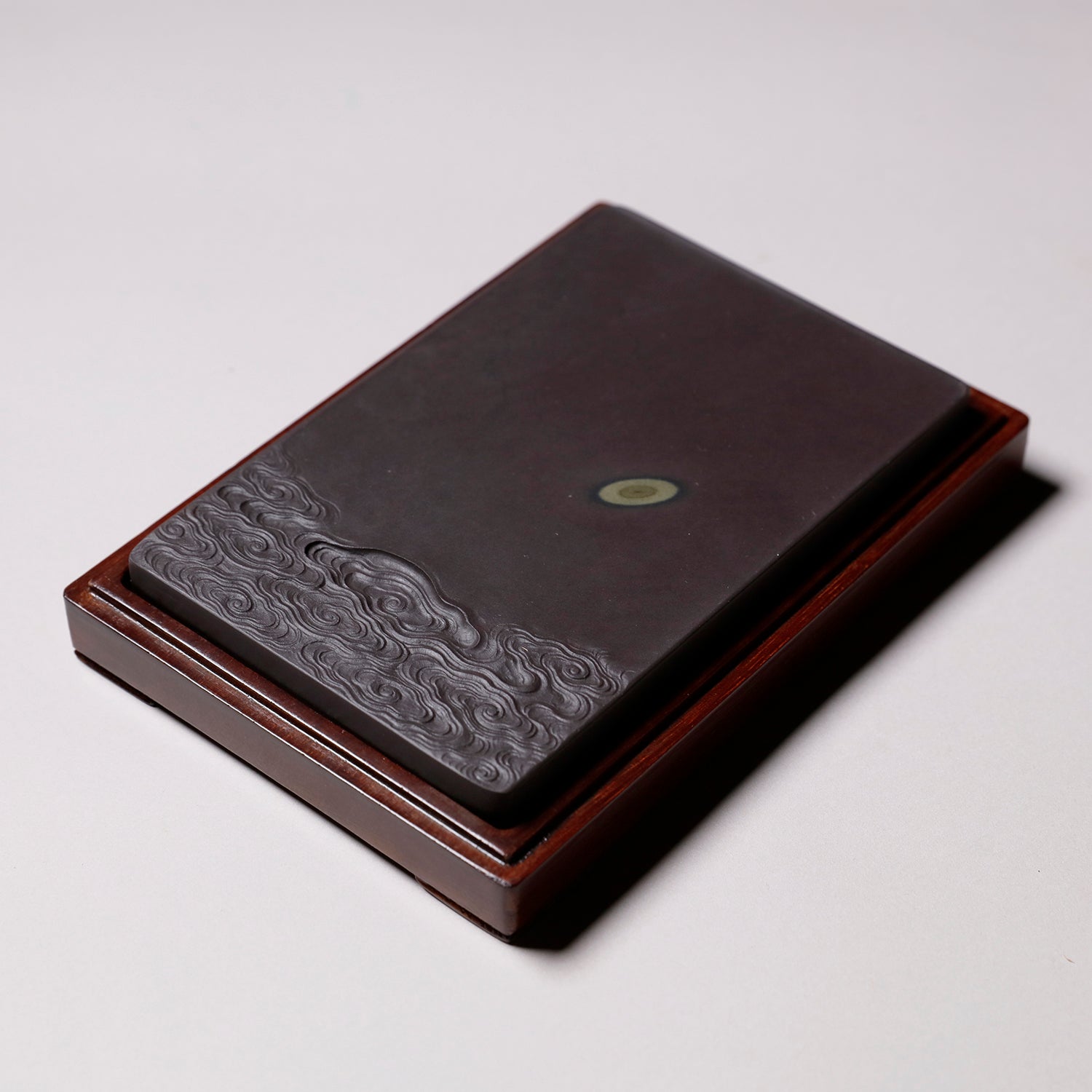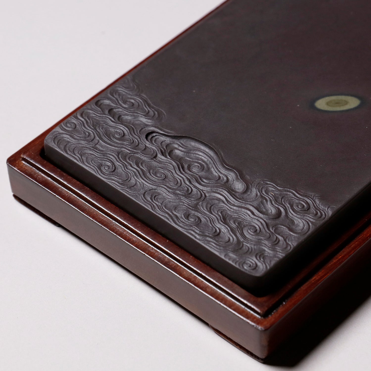 端渓硯は中国の硯における代名詞的な存在です。石のモース硬度は3.5と比較的柔らかく、その柔らかさ故に彫りを施しやすいため、装飾的な物が多くあります。また種類が豊富で採掘される抗窟で石質、名称が異なります。最上のものは川の水が流れ込む「老坑」と呼ばれる抗窟から採取したのもので、その肌合いはきめ細かく非常に滑らかです。それ故に墨を非常に滑らかに磨り下ろせ、水持ちが良く、磨った墨が乾きにくいのが特長です。それ故に油煙墨との相性がよいです。また、硯面に現れる石紋が幅広く豊かで、その紋一つ一つに名称が付けられているほどです。